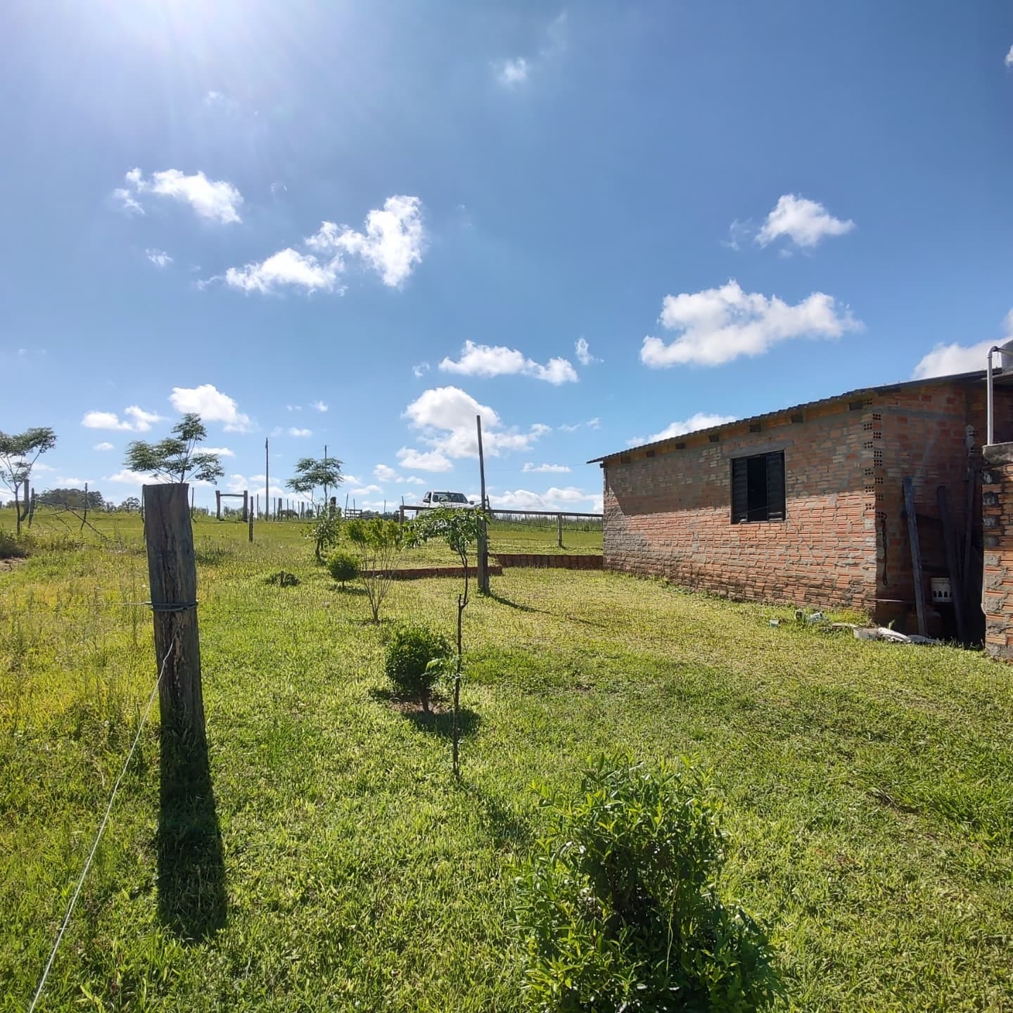 Com boa aguada, luz elétrica, campo bom para criação de gado, para plantação de uva, nogueira e oliveira.